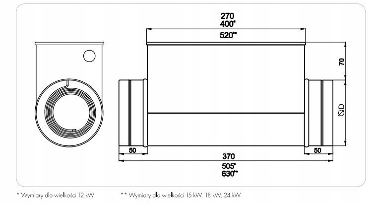 Podłączenie elektryczne musi zostać wykonane przez wykwalifikowanego elektryka, zgodnie z obowiązującymi przepisami krajowymi i międzynarodowymi. Źródło zasilania oraz przewód zasilający musi być zgodne z danymi na tabliczce znamionowej nagrzewnicy. Wyłącznik automatyczny należy dobrać odpowiednio do danych technicznych. Nagrzewnicę należy uziemić.