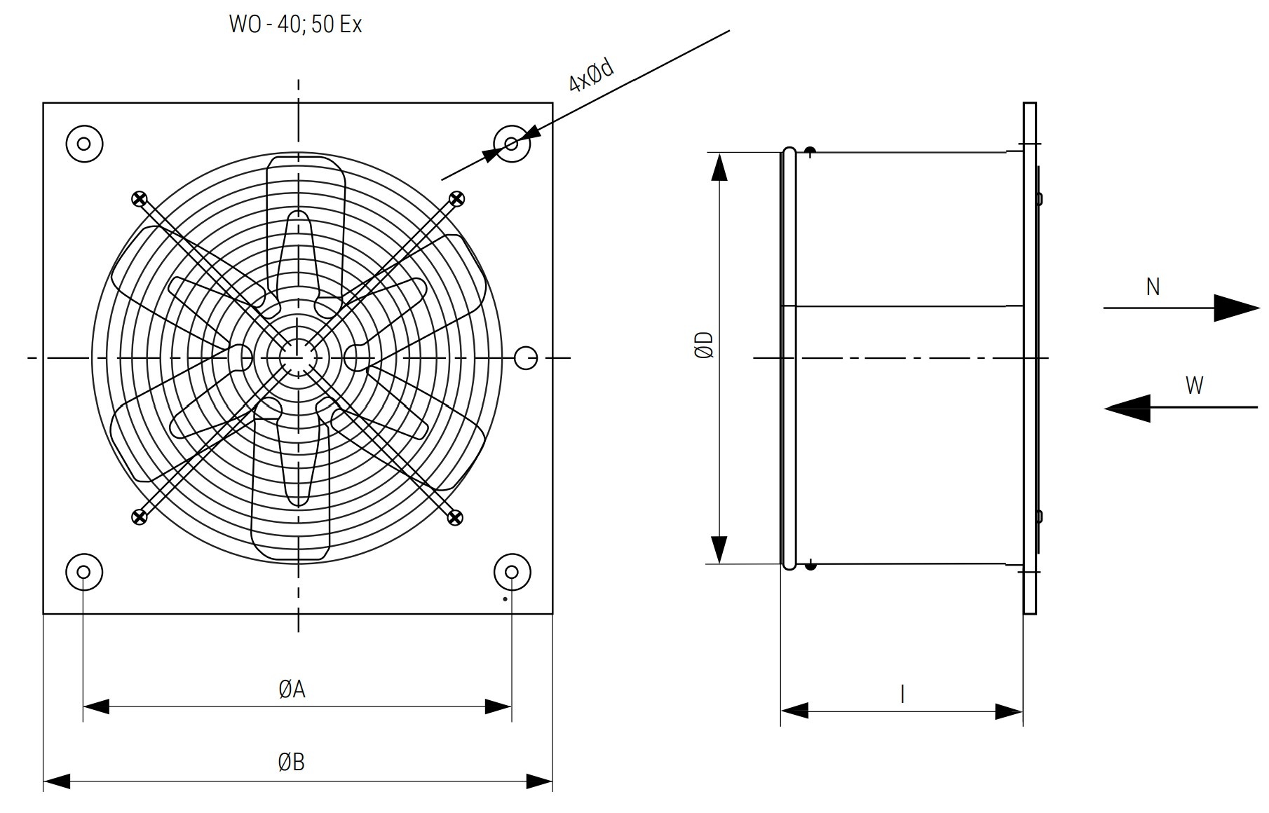 The WO-EX series explosion-proof axial fans have been designed and manufactured in accordance with the requirements of European Union law for equipment intended to operate in potentially explosive atmospheres.