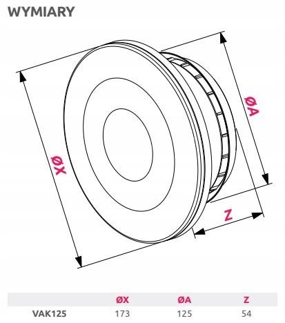 Anemostat VAK125 posiada kierownicę przepływu powietrza. Można ją ustawić w porządanym kierunku lub zdemontować.