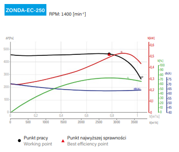 Wentylator dachowy typu ZONDA EC 250 wydajność 3600 m3/h w wentylatorach wykorzystano nowoczesne silniki z bezszczotkową komutacją elektroniczną typu