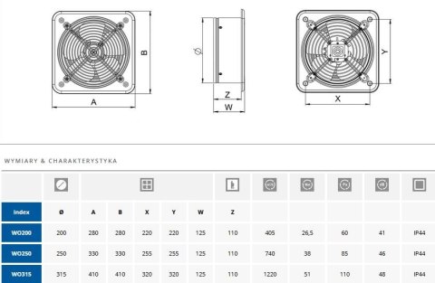 Wentylatory serii WO charakteryzują duże możliwości szybkiej i efektywnej wymiany powietrza. Wykonane są z tworzywa ABS, które jest odporne na działanie warunków atmosferycznych.